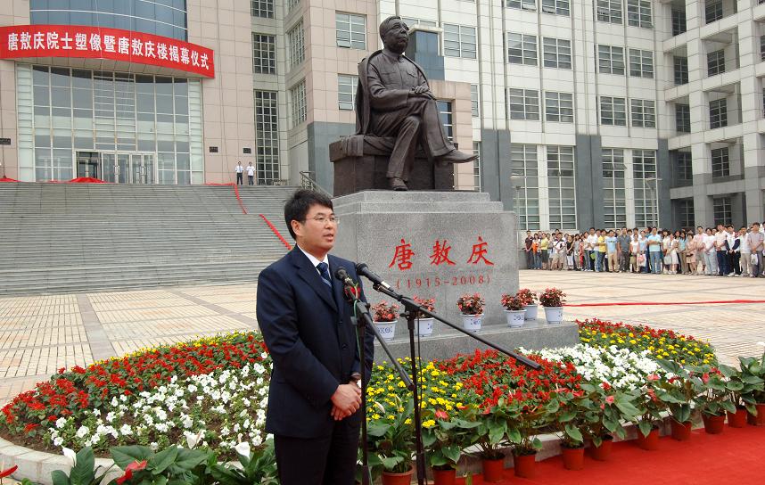在仪式上,校党委书记陈德文和校长展涛共同为唐敖庆楼揭幕。徐光宪院士、姚建年院士、唐敏女士、展涛校长共同为唐敖庆院士塑像揭幕。参加仪式的全体同志向唐敖庆塑像三鞠躬致敬。唐敖庆院士的学生孙家钟院士介绍了唐敖庆院士的生平。